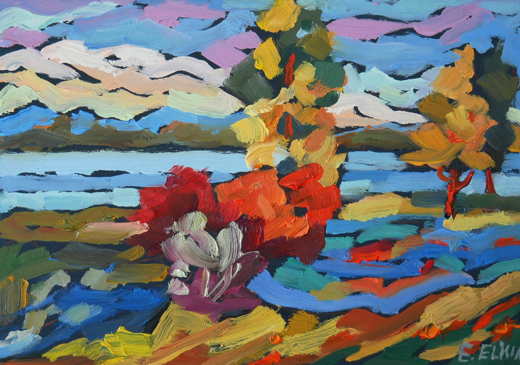 Painting, Autumn Day, oil on board, 5"x 7" x 0.2"