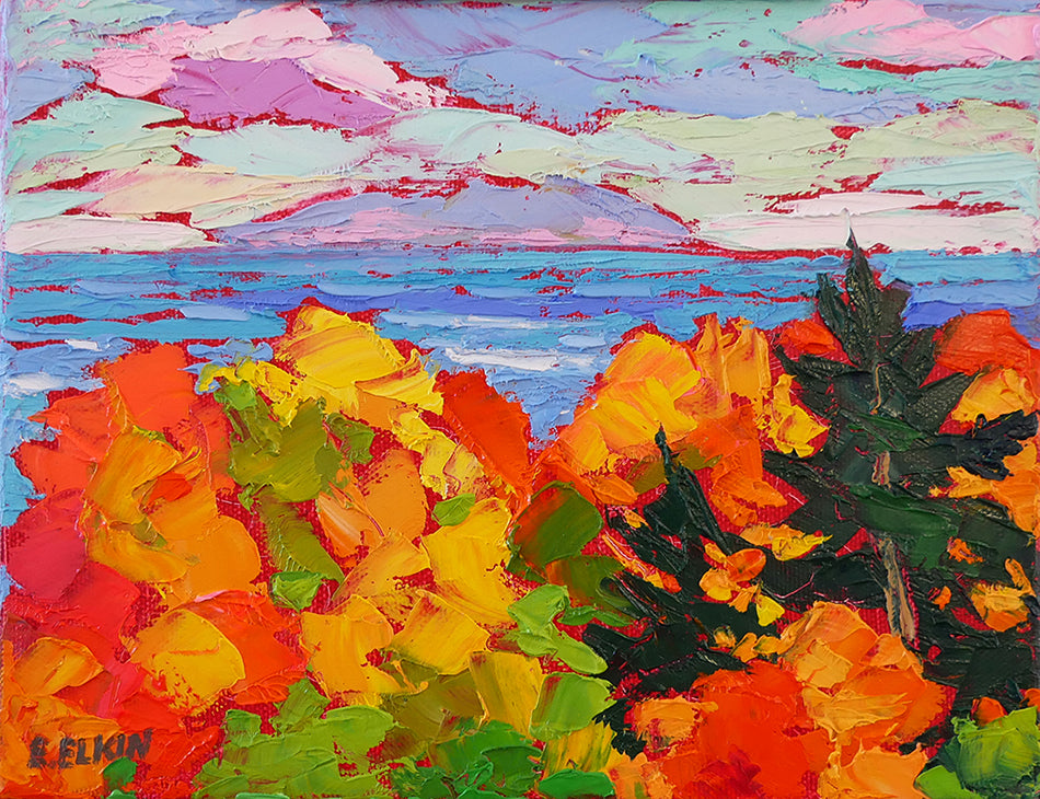 Painting, Autumn Revelry, 9"x7"x0.8", oil on canvas