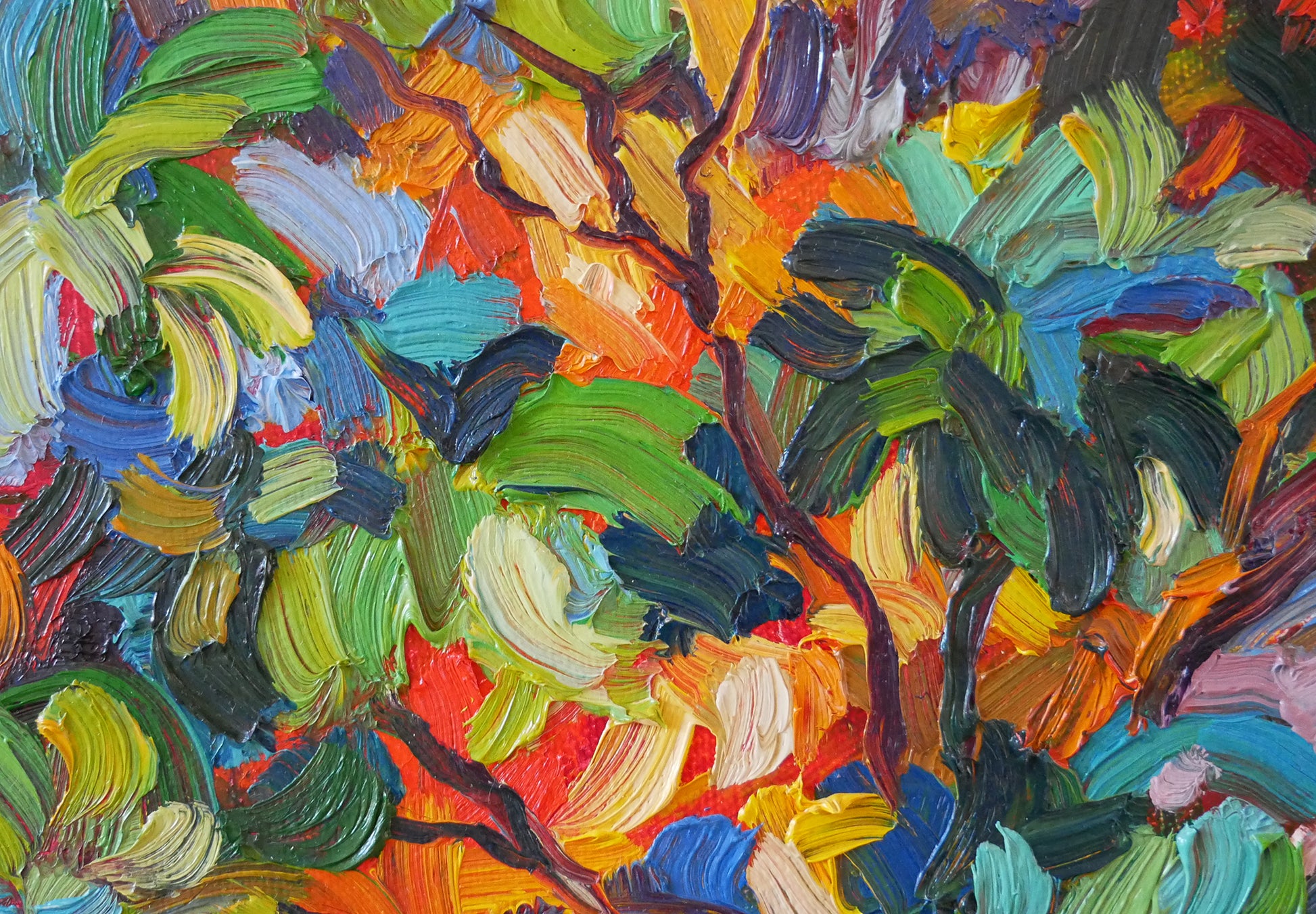 The thick texture of paint applied with brushes, created with high-quality oil paints, ensuring vibrant colors and lasting beauty.