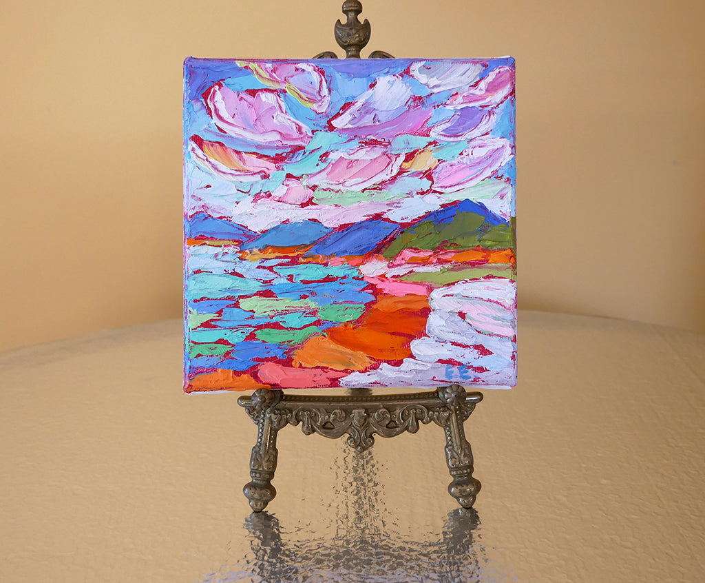 Painting, Pink Clouds, oil on canvas, 6"x 6" x 0.8"