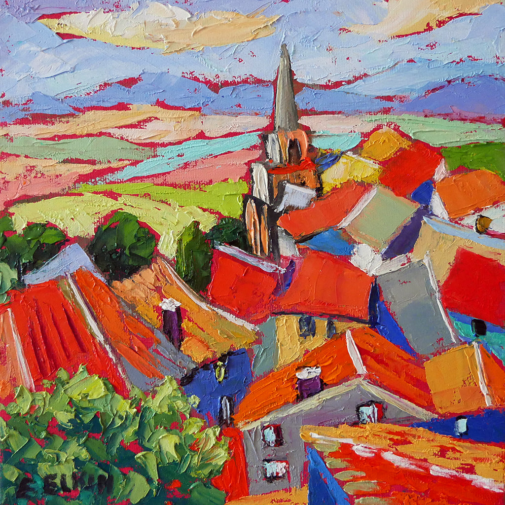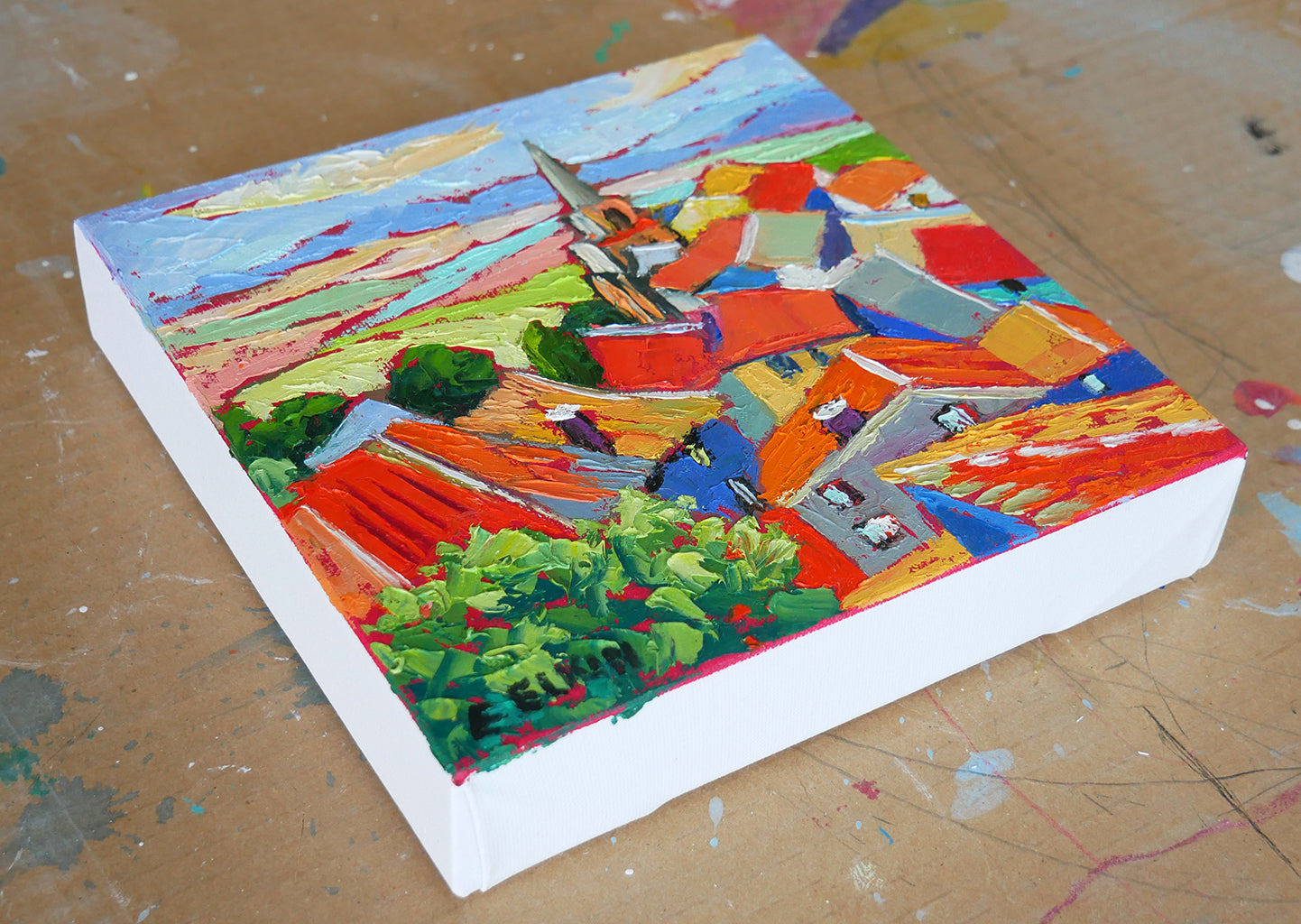 Provence village, oil on canvas, 8"x 8"x1.5", cityscape.