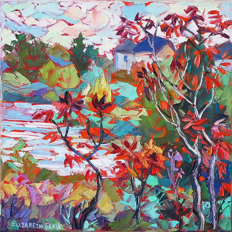 Painting, Red leaves, oil on canvas, 12"x 12"x 0.8"