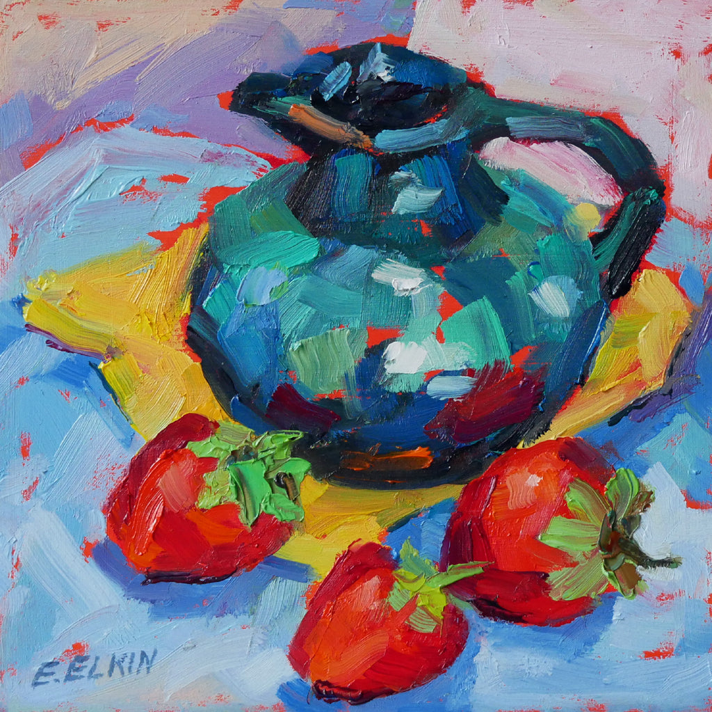 Still-Life with Strawberry, oil on board, 6"x 6" x 0.2"