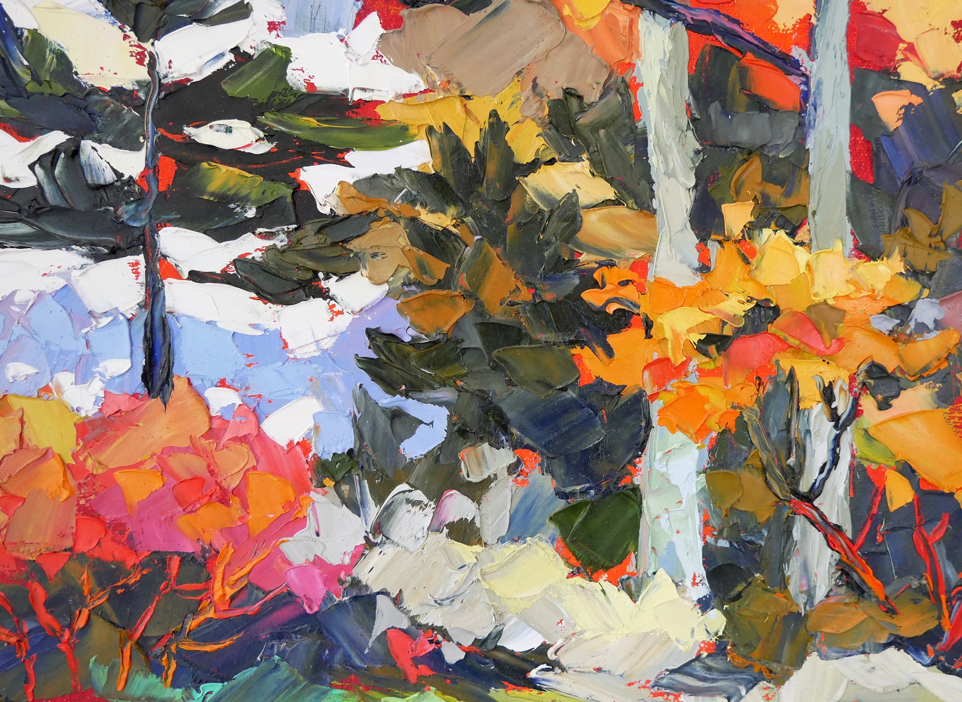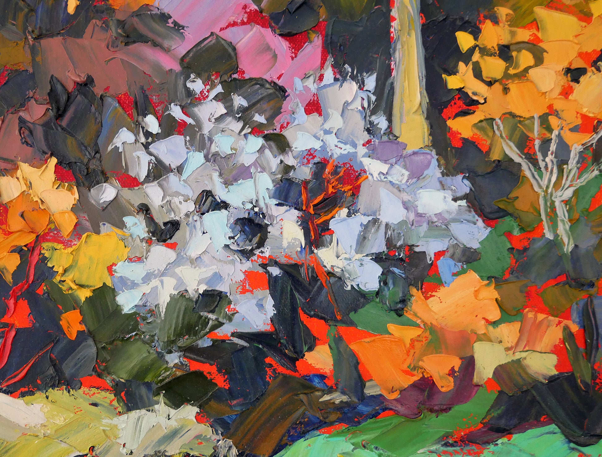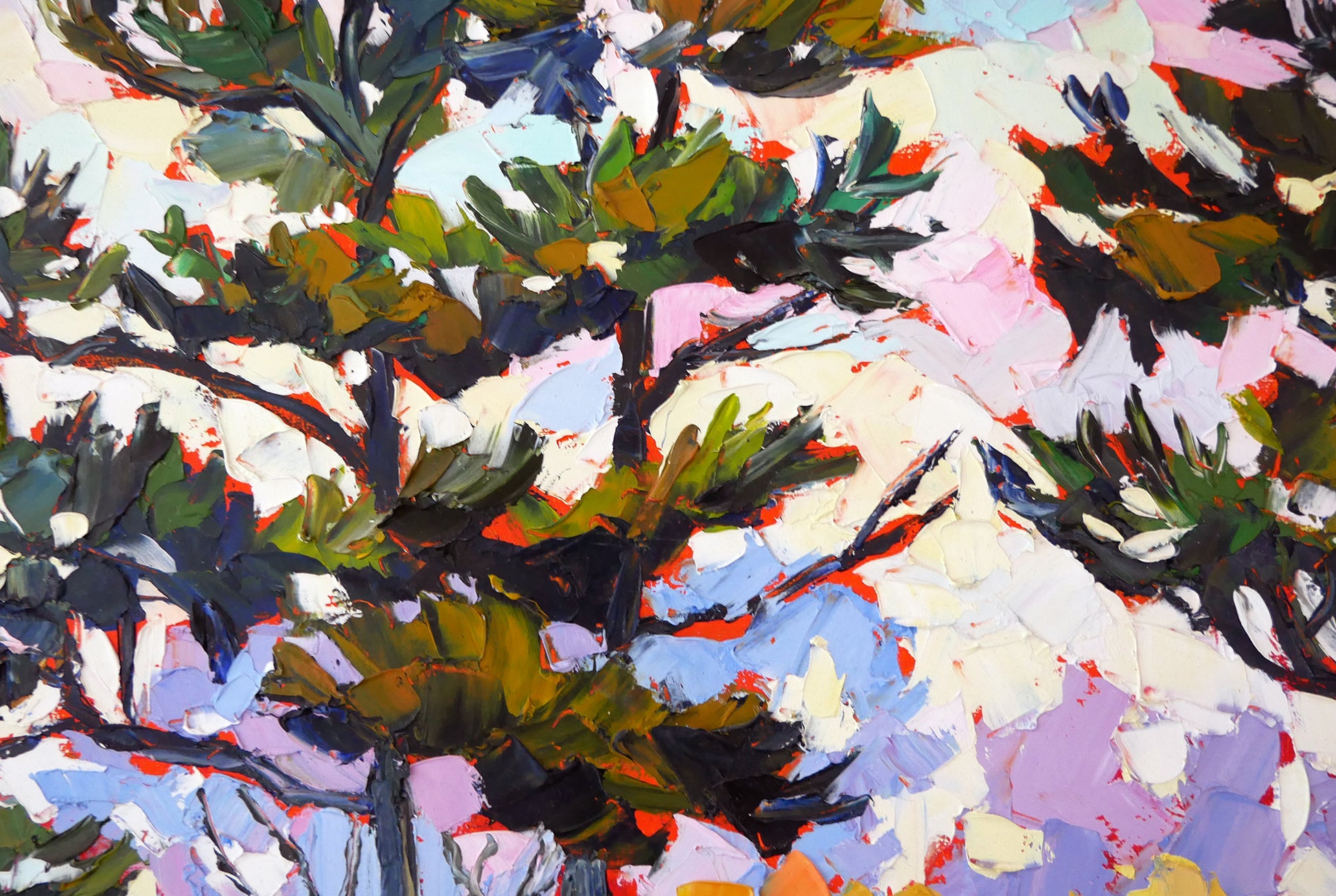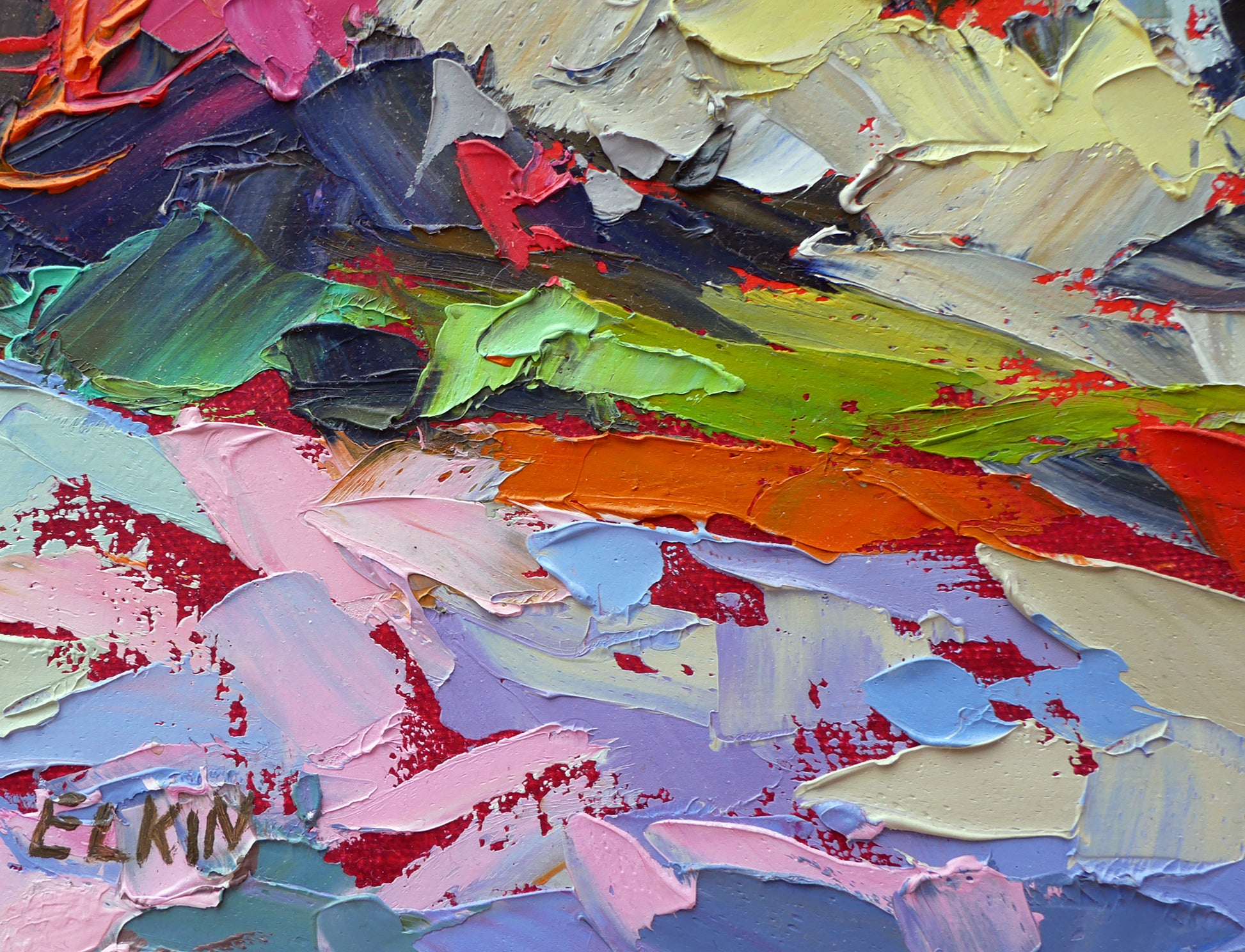The thick texture of paint applied with palette knife, created with high-quality oil paints, ensuring vibrant colors and lasting beauty.
